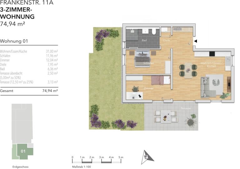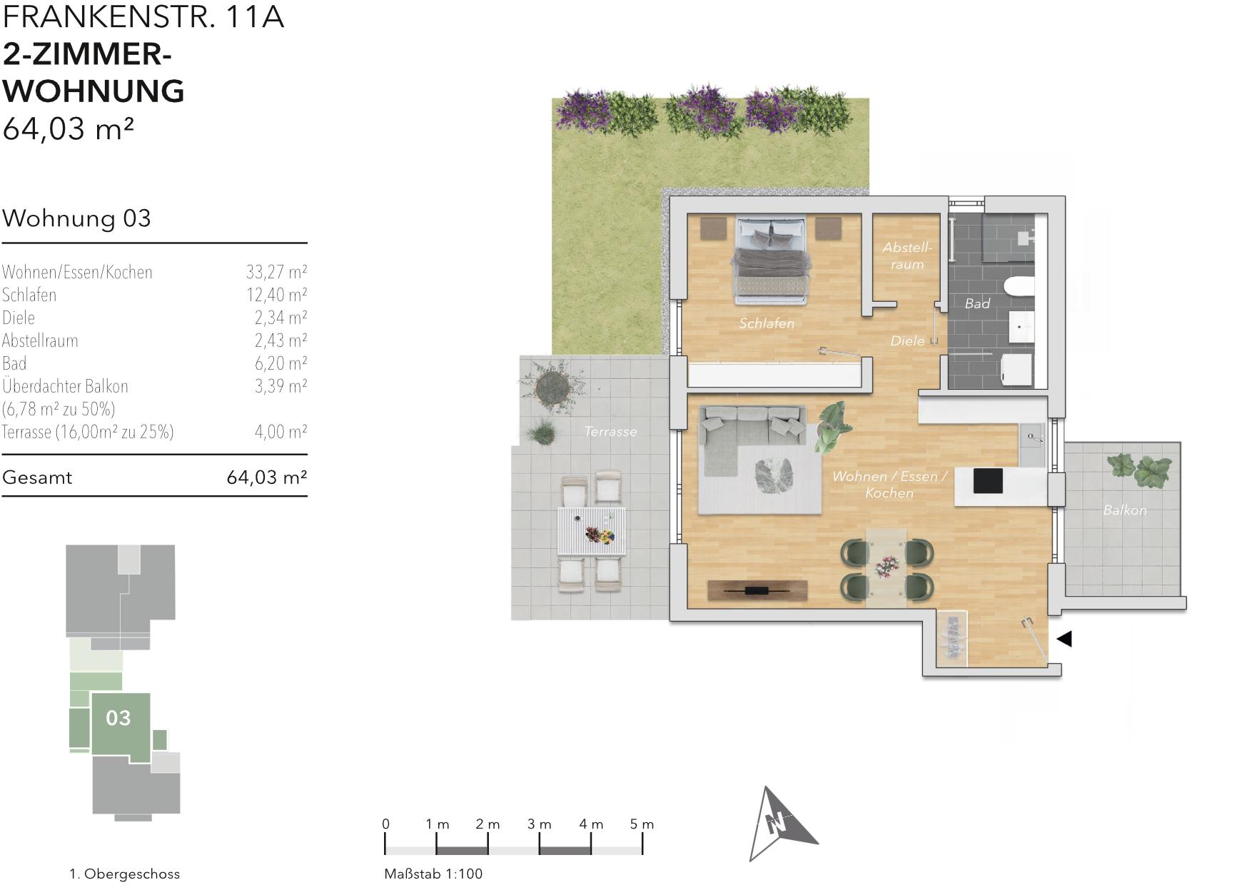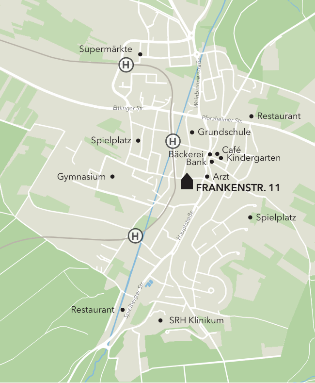 Alle Geschäfte des täglichen Bedarfs, wie verschiedene Supermärkte, Fachgeschäfte aller Art sowie ein vielfältiges Angebot an Gastronomie befinden sich in der unmittelbaren Umgebung. Für Familien mit Kindern bietet der Ort eine solide, breit aufgestellte Bildungslandschaft. Von der Grundschule bis über weiterführende Schulen ist alles vorhanden. Mit einem modernen Gesundheitszentrum, dem SRH-Klinikum, Ärzten und Apotheken ist eine nahezu lückenlose medizinische Betreuung gewährleistet.